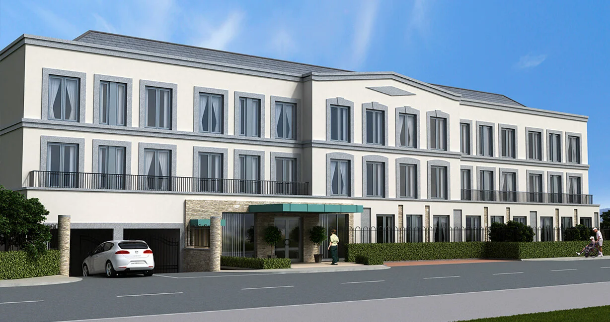 Great care went into our building design for this nursing home, in order to meet the intensive care demands of patients with dementia and acquired brain injury. We designed the facility across three storeys and a basement, totalling 19,000 sq. ft. of space. The three upper floors have 41 bedrooms, along with the necessary communal, therapeutic, and sanitary facilities. Our design set aside the basement level for services such as kitchen, laundry, and car parking. We also proposed an outdoor garden at the rear of the building.
